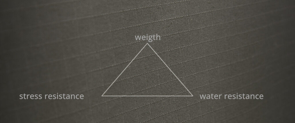 The second frequently discussed topic is the density of the fibers, marked with the letter „D”. The greater the value in front of this sign, the thicker the fiber, where 1D is the size of the natural silk thread. D affects the weight and density of the material as well as its strength. In dmtents, we used mainly polyester fabric due to the lower stretchability, which has a direct impact on water and UV resistance and makes it easier to fold the tent.