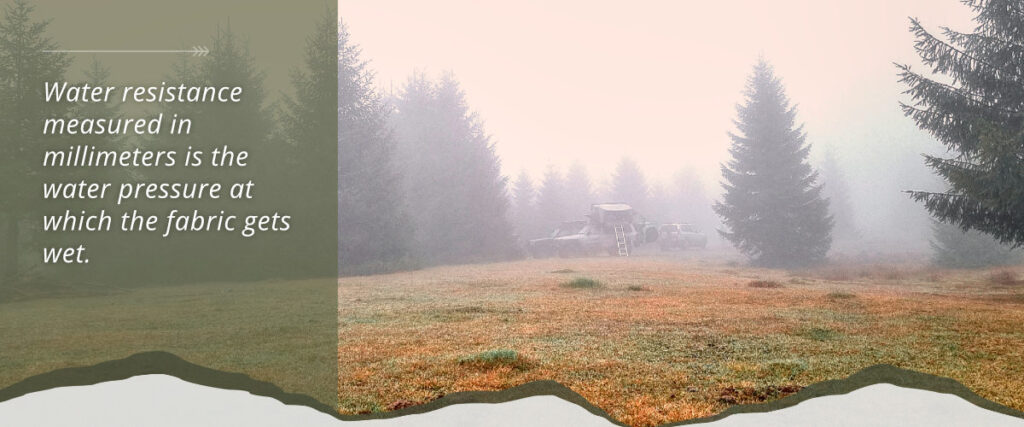 When planning to buy a roof tent, clients usually have some initial technical assumptions. We’ve noticed that water resistance is usually the most important thing for you. We’d like to point out that greater water resistance does not always mean greater durability of the product. Along with the parameters of water resistance, the stiffness and weight of the material increases, which also makes it more susceptible to mechanical damage and tearing.
