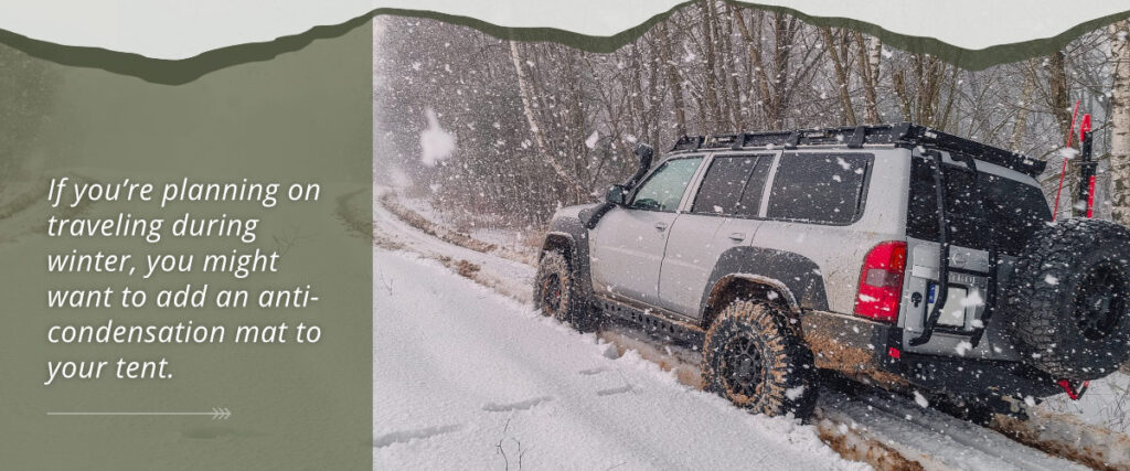 Careful selection of materials in tents is the necessity. A stiff floor, walls that are difficult to tear, and a waterproof and windproof flysheet make traveling with a roof tent even more convenient and comfortable.