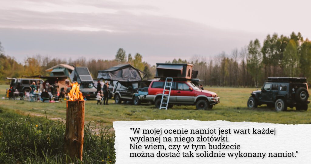 W mojej ocenie namiot jest wart każdej wydanej na niego złotówki. Nie wiem, czy w tym budżecie można dostać tak solidnie wykonany namiot. Wiadomo – dachówki w twardej skorupie nie są najtańszą opcją, ale kiedy planujesz jeździć w miejsca, gdzie jest sporo krzaków i gałęzi, to tak naprawdę nie ma innej opcji.