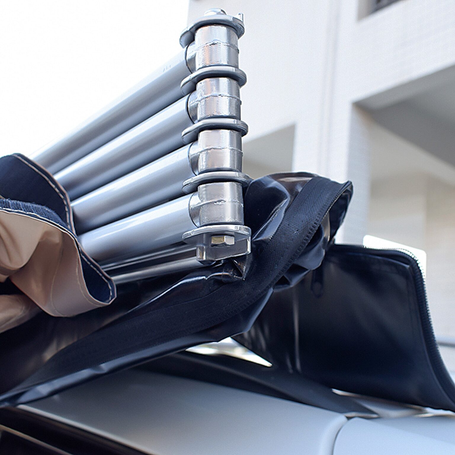 Montaż jest niezwykle prosty, intuicyjny i uniwersalny. Side 2 wystarczy przymocować do relingów samochodu po stronie kierowcy za pomocą prostych do przykręcenia uchwytów. Dzięki temu materiał będzie zabezpieczony przed powiewami wiatru. Zadaszenie boczne z łatwością rozłoży jedna osoba, co dodatkowo sprawia, że używanie go podczas wyjazdów jest przyjemnością.