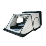 Namiot dachowy FOLD E 150 marki OFFLANDER to kompaktowe, a zarazem niezwykle solidne rozwiązanie dla dwóch osób (maksymalnie trzech), lub rodziny 2+1. To model, który łączy w sobie szybkie rozkładanie, trwałość i najwyższy komfort podróżowania. Dzięki nowoczesnym tkaninom z powłoką blackout oraz wyjątkowo wysokiej wodoodporności aż PU 5000 mm, FOLD E 150 poradzi sobie w najbardziej wymagających warunkach pogodowych.