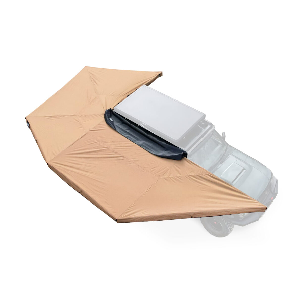 Solidna konstrukcja markizy wykonana jest z lekkich profili aluminiowych malowanych proszkowo co zapewnia trwałość i łatwość użytkowanie przez długie lata. BATWING wyróżnia się rozpiętością 270 stopni wokół samochodu, co daje osłonę na jednym z dłuższych boków samochodu i co ważniejsze jego tyłu. Tam zazwyczaj mamy dostęp do bagażnika czy też części zabudowy z kuchnią.
