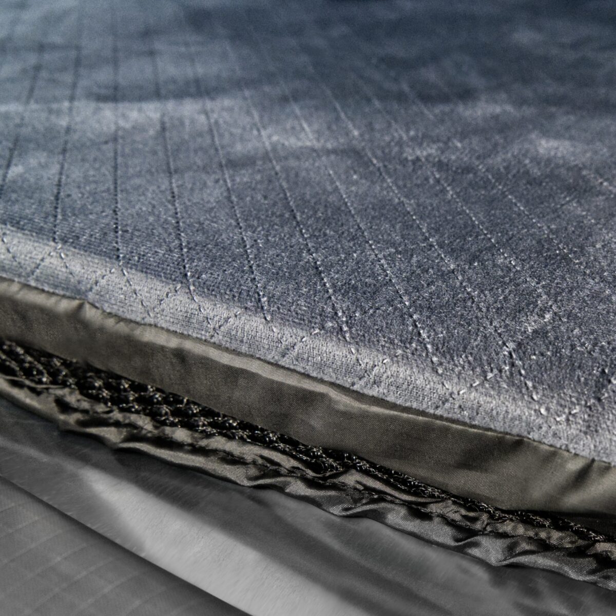 TRIANGLE SLIM został zaprojektowany z myślą o dwóch osobach. Wewnątrz znajduje się materac o wymiarach 196 × 120 cm i grubości 5 cm, który zapewnia wystarczającą przestrzeń i wygodę do spania w każdych warunkach. Pod materacem znajduje się mata antykondensacyjna. Jest to specjalna warstwa, która ma za zadanie ograniczanie skraplania się pary wodnej. W trakcie użytkowania namiotu, zwłaszcza gdy na zewnątrz panuje niższa temperatura, a wewnątrz jest cieplej, wilgoć w postaci pary wodnej zaczyna kondensować się na zimnych powierzchniach, w tym na materiale namiotu dachowego. To może prowadzić do powstawania wilgoci, pleśni i grzybów, co z kolei może wpłynąć negatywnie na kondycję namiotu oraz na komfort użytkowania.
