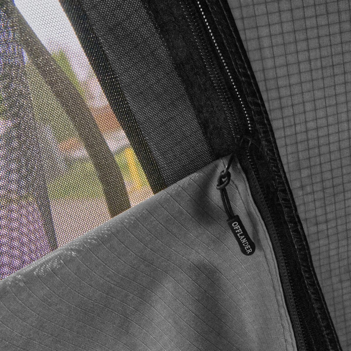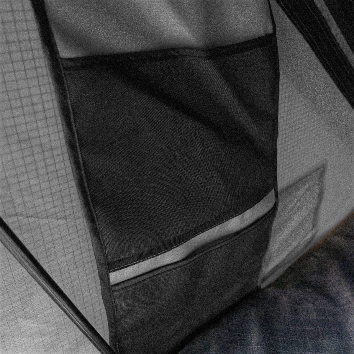 Technika RIP-STOP oznacza, że w stałych odstępach dodano nitkę mocniejszego włókna. Takie ulepszenie dodatkowo zapobiega rozdzieraniu się materiału. Zamki przy otworach okiennych także zostały zabezpieczone tak, aby woda nie dostała się do środka.