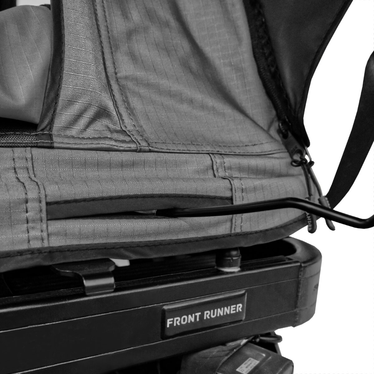 Po złożeniu namiot ma tylko 12 cm wysokości. To ogromna zaleta dla wszystkich, którzy chcą uniknąć problemów z aerodynamiką, hałasem w trakcie jazdy czy wjazdem do parkingów podziemnych. TRIANGLE SLIM nie rzuca się w oczy, ale kiedy go otworzysz, zaskoczy Cię swoją przestronnością.