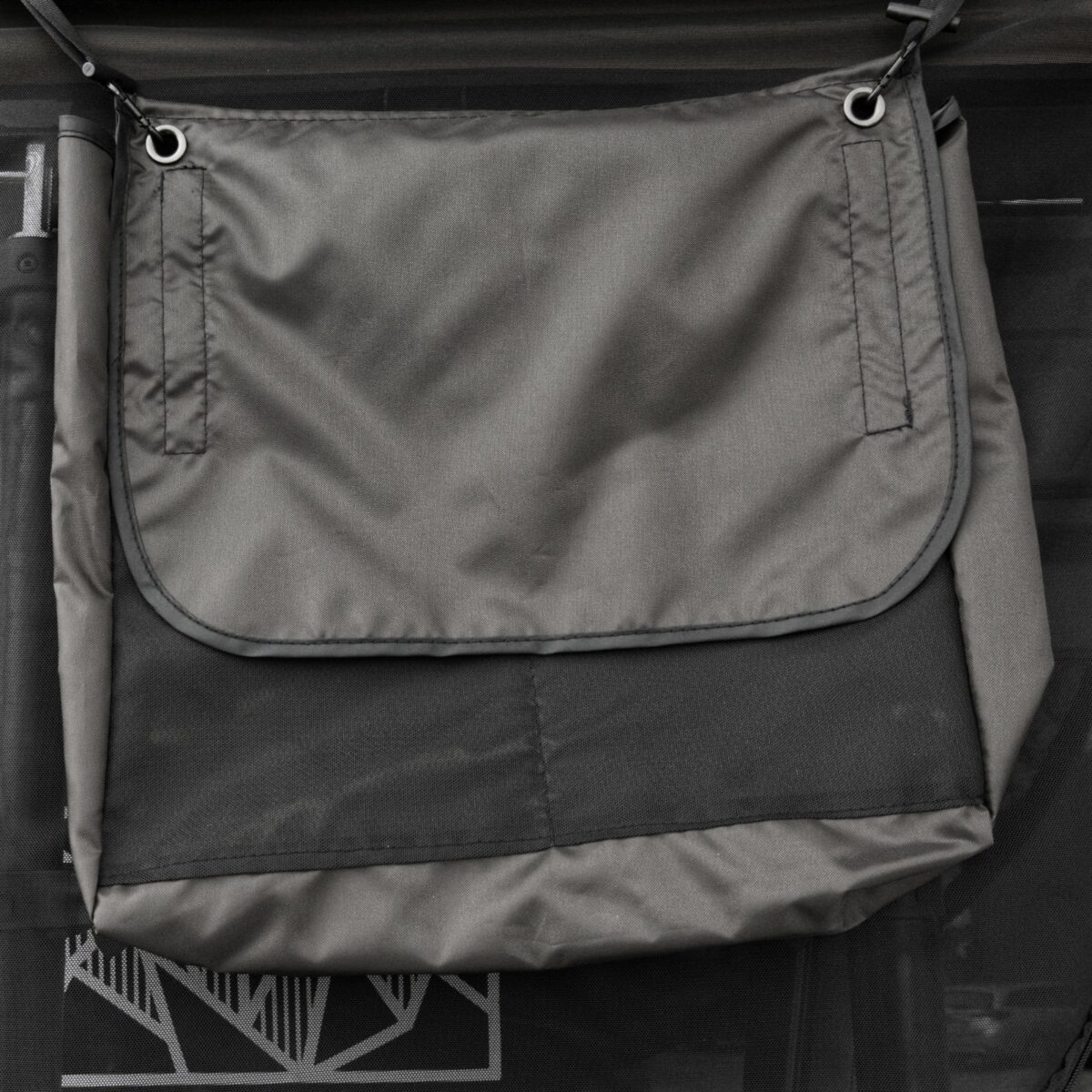Wewnętrzna część pokrywy pokryta jest miękką wykładziną samochodową, do której można mocować na rzepach różne akcesoria, takie jak torby, kieszenie, oświetlenie, powerbanki, itp.