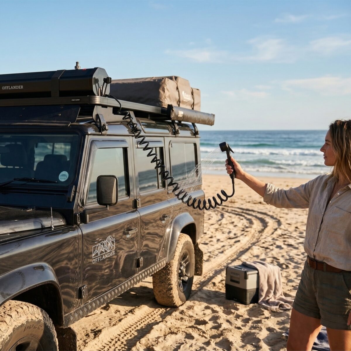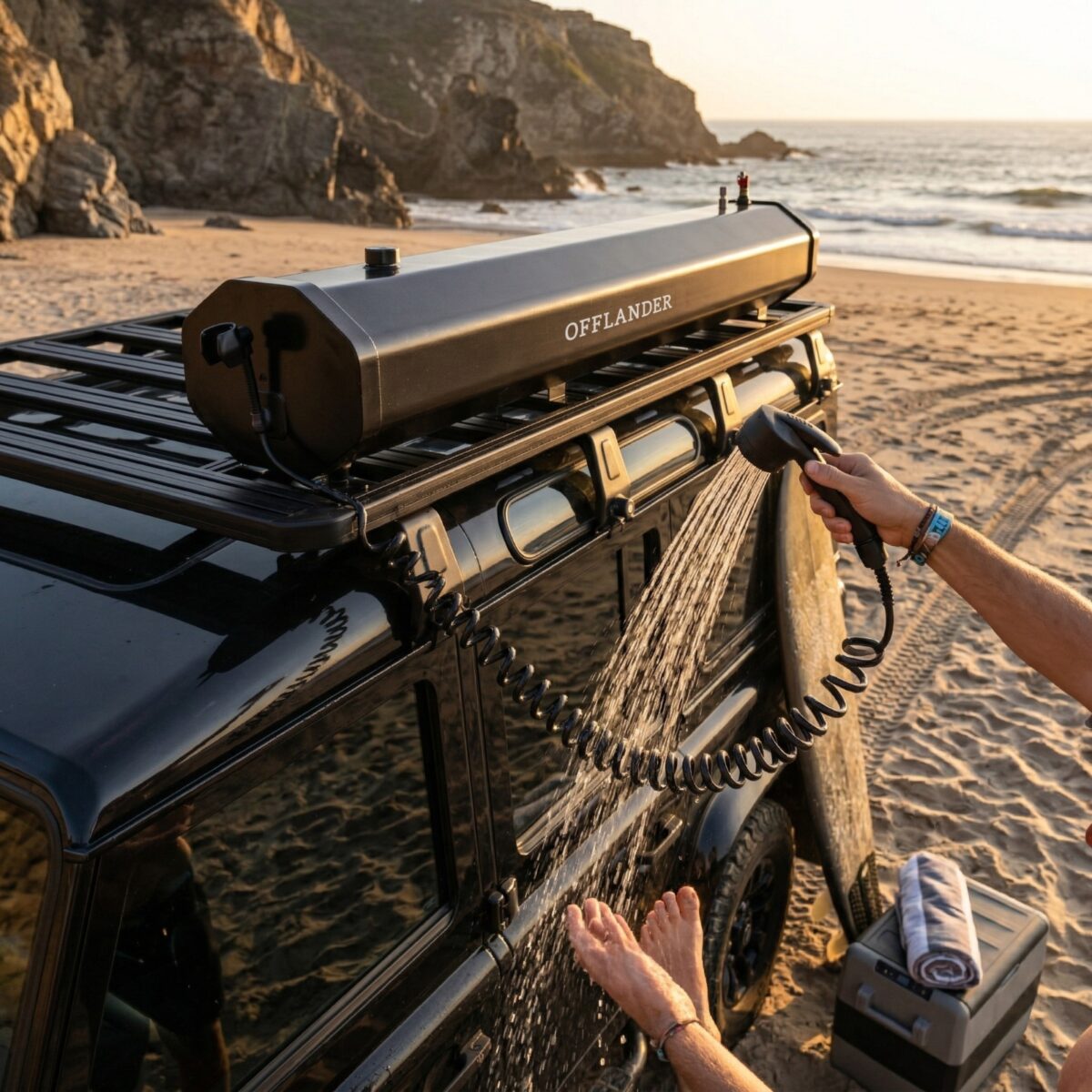 Prysznic ze zbiornikiem na wodę 30L marki OFFLANDER to praktyczne rozwiązanie dla osób, które podróżują niezależnie i chcą mieć dostęp do bieżącej wody w każdych warunkach. Montowany na bagażniku dachowym, zapewnia wygodny dostęp do prysznica zawsze wtedy, gdy go potrzebujesz, niezależnie od miejsca postoju. Sprawdzi się zarówno podczas dłuższych wypraw, jak i weekendowych wyjazdów pod namiot. Umożliwia szybkie umycie się po trasie. To funkcjonalne wyposażenie, które realnie podnosi komfort każdej podróży.