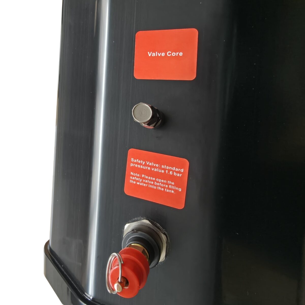 Zbiornik wyposażony jest w zawór umożliwiający zwiększenie ciśnienia wody, co znacząco poprawia komfort użytkowania. Dodatkowy zawór bezpieczeństwa chroni przed nadmiernym ciśnieniem i zapewnia bezpieczne działanie w każdych warunkach.