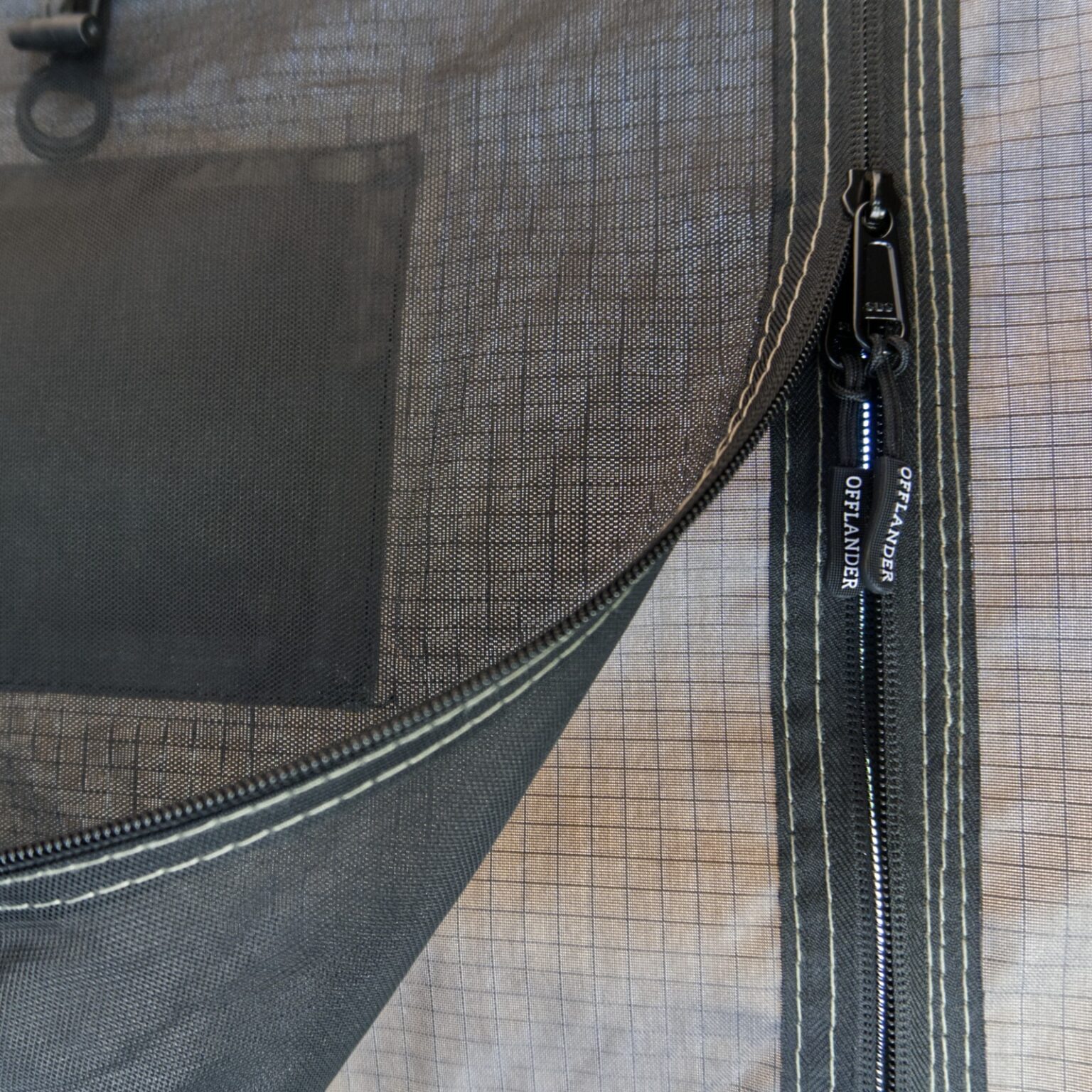 Przedsionek wyposażono w cztery okna do samej ziemi, z możliwością całkowitego zasłonięcia lub odsłonięcia – wszystko zależy od tego, czy potrzebujesz pełnej prywatności, czy maksymalnej wentylacji. Wystarczy rozpiąć odpowiedni panel, żeby zmienić charakter przestrzeni – od funkcjonalnego przedpokoju po przytulny kącik na wieczorne rozmowy przy biwakowym stole.|