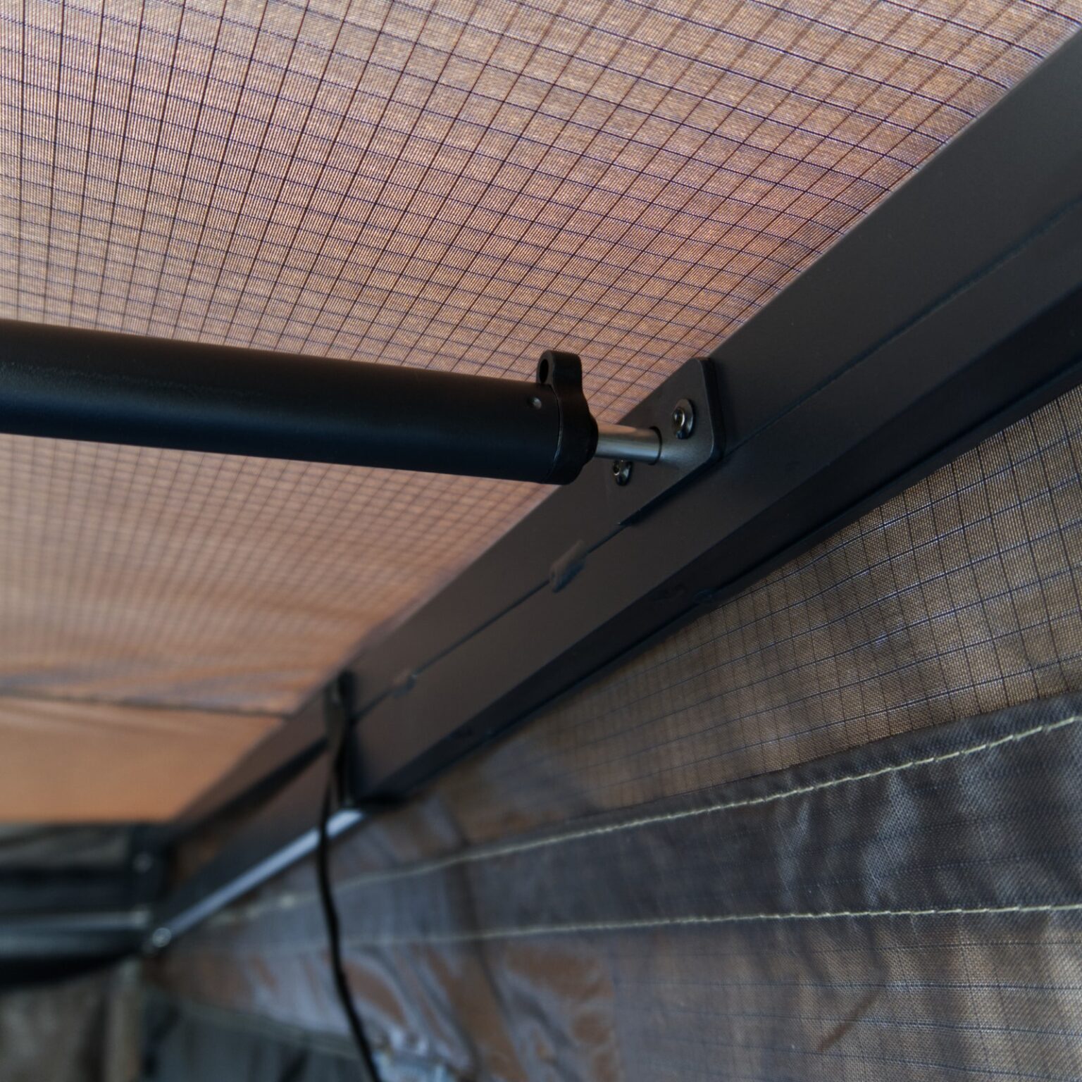 Wykonany z tej samej trwałej tkaniny co markiza – Oxford 420D, z wodoodporną powłoką PU (2000–3000 mm) – skutecznie chroni przed deszczem, wilgocią i wiatrem. Dzięki moskitierom w oknach i drzwiach można korzystać z przewiewu bez ryzyka, że wieczór zepsują nieproszone insekty.