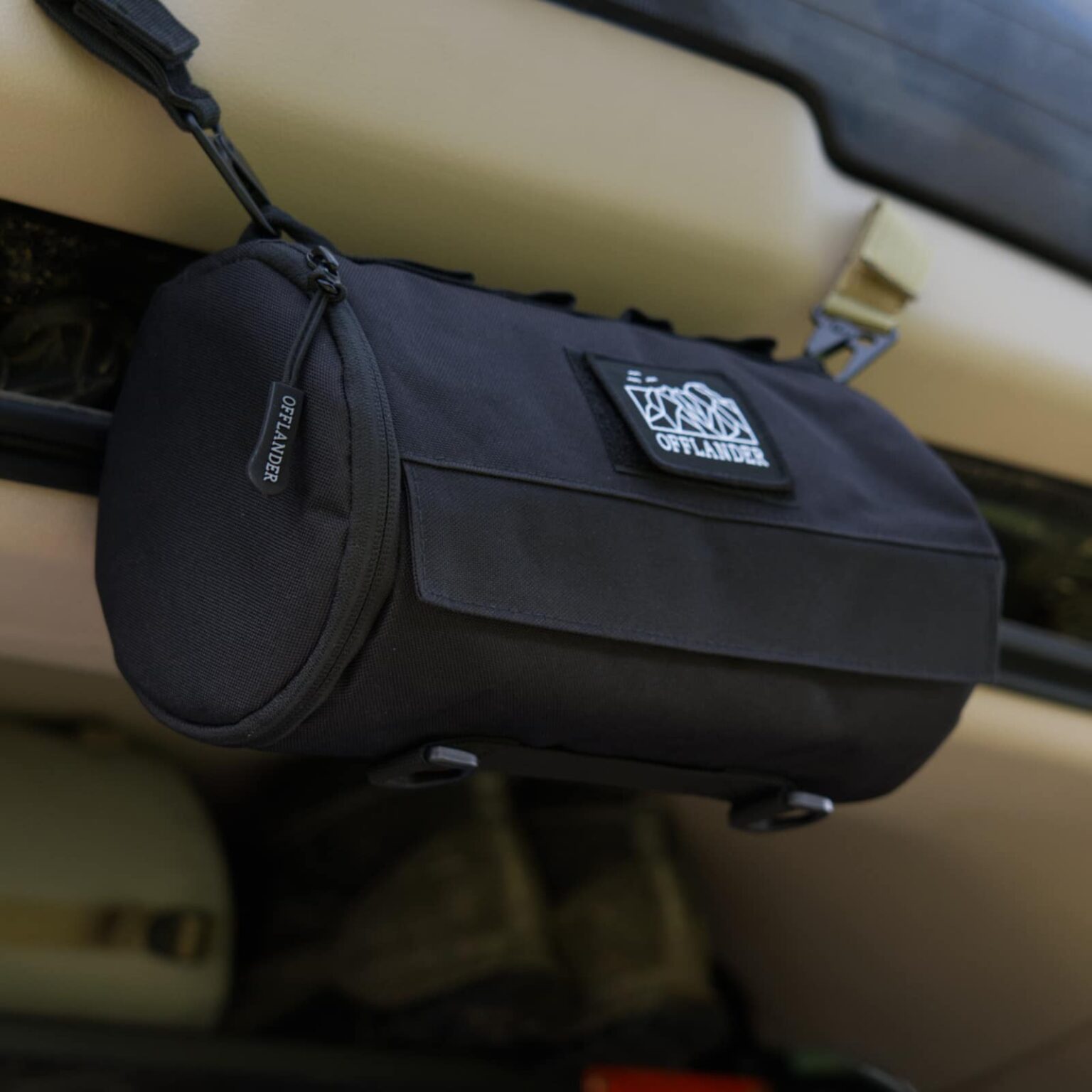 Uniwersalna torba cylindryczna do przechowywania dla podróżników marki OFFLANDER. Sprawdzi się na przykład jako pojemnik na papier toaletowy lub podajnik na ręczniki papierowe czy też mokre chusteczki. Wbrew pozorom większość podróżników ma problem z odpowiednim przechowywaniem tym podstawowych artykułów higienicznych. Ręczniki papierowe zazwyczaj się rozwijają, moczą lub brudzą albo są głęboko schowane i wymagają częstego szukania, lub po prostu nie są pod ręką. Torba rozwiązuje w wielu przypadkach ten problem, gdyż można ją zawiesić w samochodzie w praktycznie każdym miejscu, na przykład na tylnych drzwiach samochodu na półce lub panelach molle w przypadku samochodów terenowych.