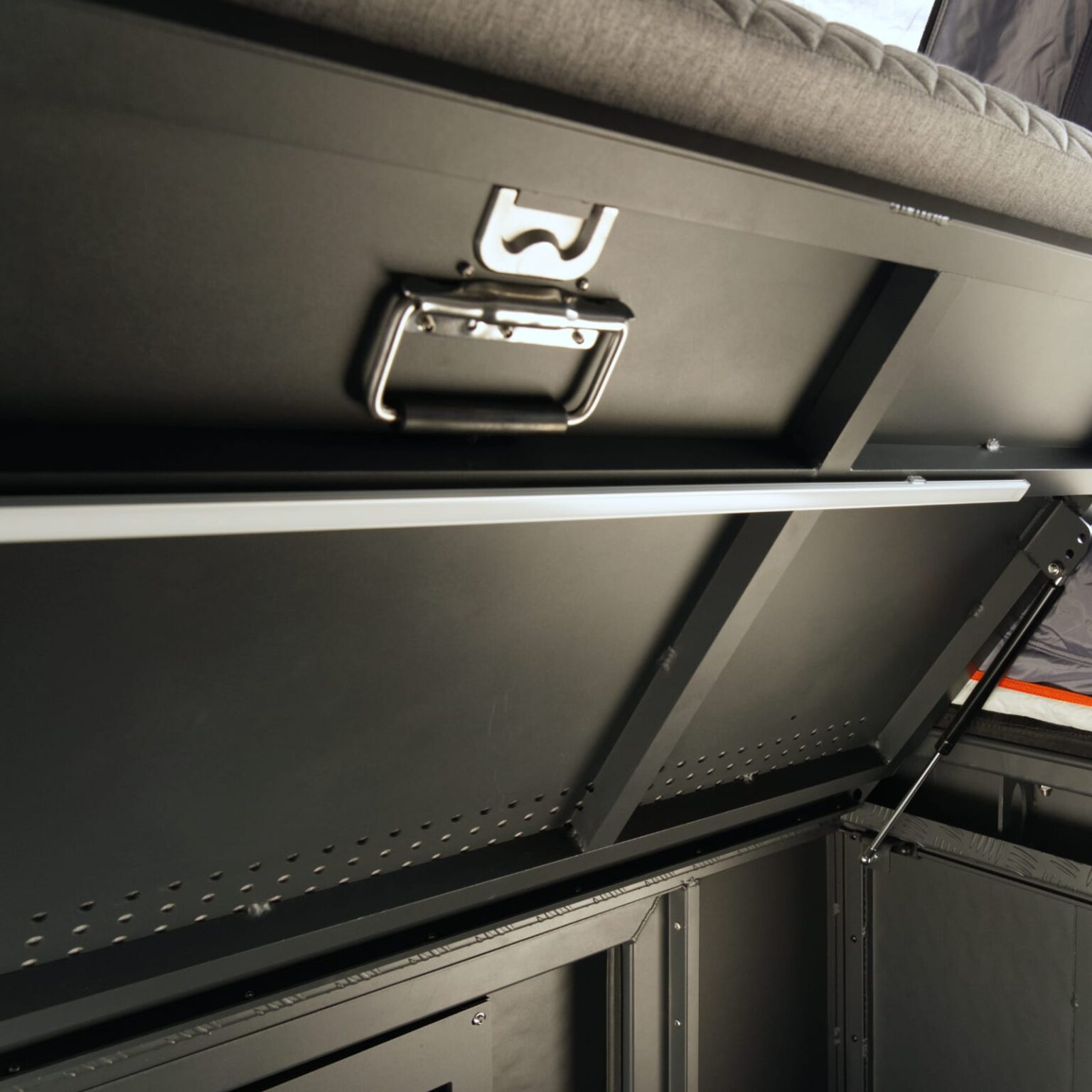 Draa daje Ci wolność aranżacji – wnętrze nie jest narzucone z góry, dzięki czemu możesz dostosować układ szafek, skrzyń czy dodatkowych akcesoriów do swojego stylu podróży. Minimalistyczna baza konstrukcyjna pozwala zbudować dokładnie taką kapsułę, jakiej potrzebujesz.