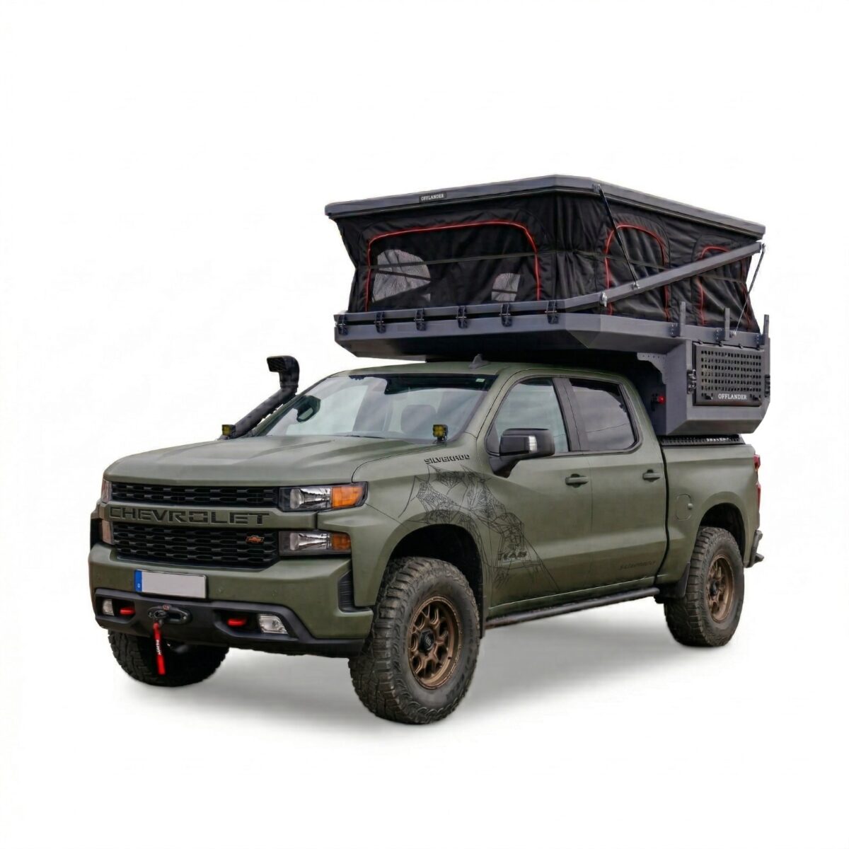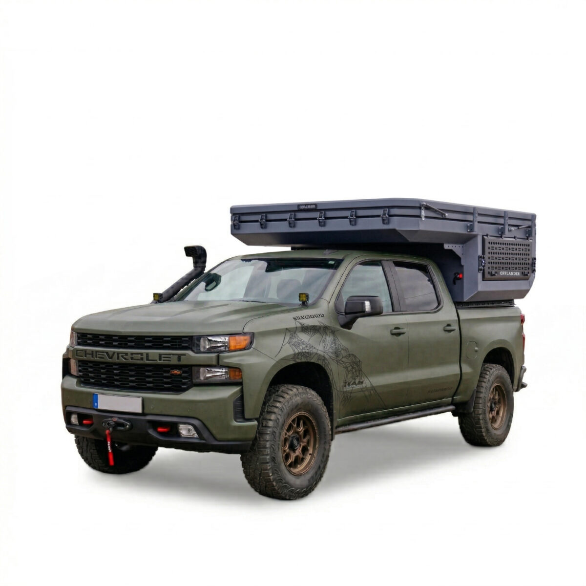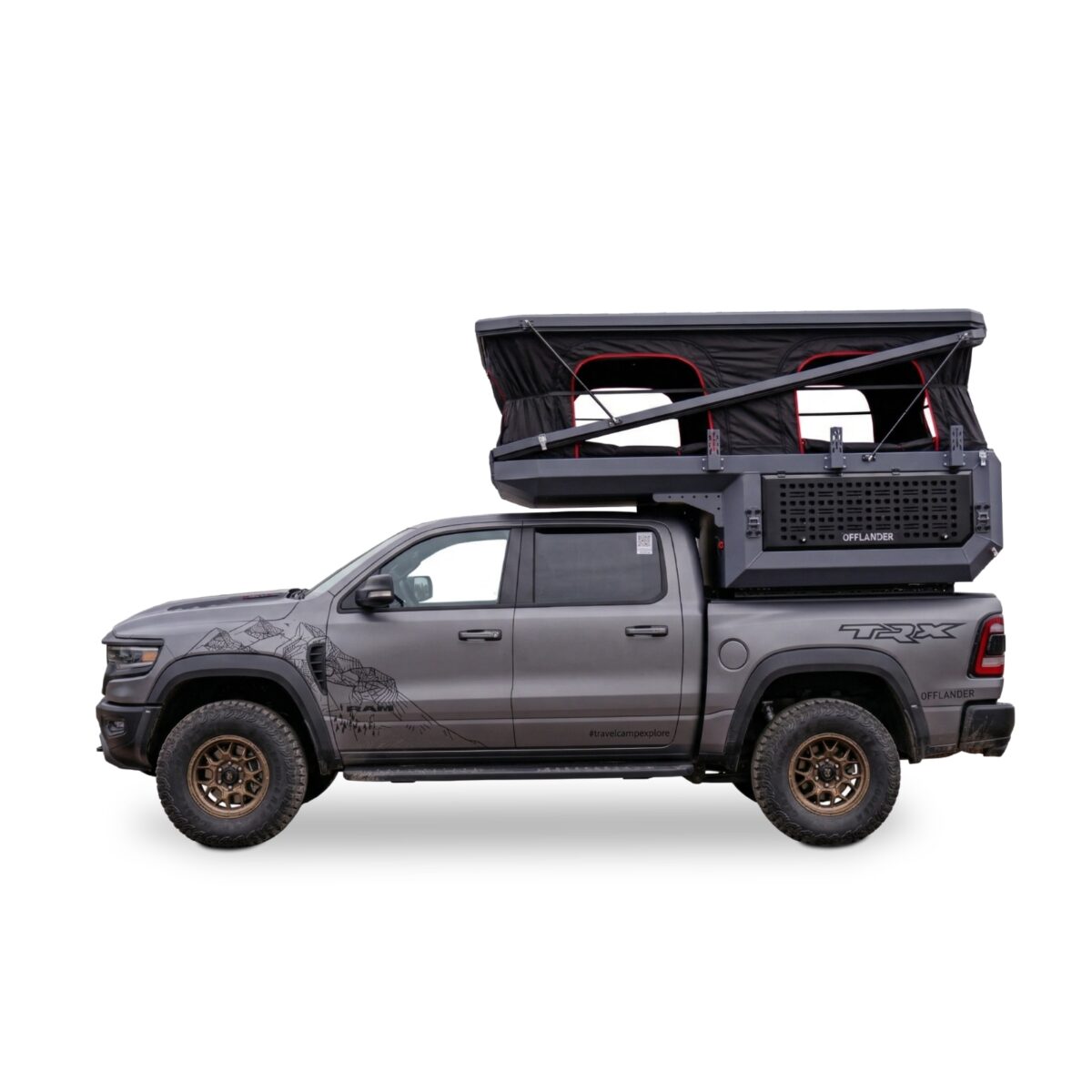 OFFLANDER DUNA US to nietuzinkowa i odważna konstrukcja, stworzona dla tych, którzy chcą w pełni wykorzystać potencjał potężnych amerykańskich pickupów typu Full-Size (RAM 1500, Ford F-150, Toyota Tundra). Zaprojektowana specjalnie pod krótkie paki o długości ok. 170 cm (5,5″), stanowi idealne dopełnienie szerokich i masywnych sylwetek amerykańskich legend, nadając im wyprawowego sznytu bez utraty ich surowego charakteru. Fundamentem wytrzymałości tej kabiny jest pancerne aluminium o grubości 3 mm, które pozwala zachować optymalne właściwości jezdne auta w trudnym terenie. Zastosowana trójwarstwowa izolacja o grubości 30 mm zapewnia komfort w każdych warunkach pogodowych, a innowacyjny dach hybrydowy gwarantuje stabilność konstrukcji oraz cenną, dodatkową przestrzeń transportową.