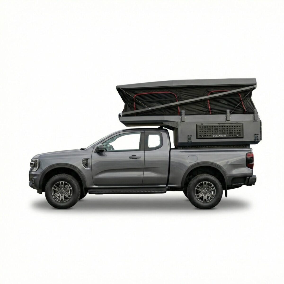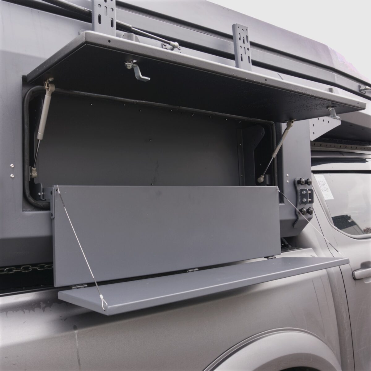 - Zabezpieczenie dodatkowe: Fabryczna klapa pickupa po zamknięciu stanowi zewnętrzną barierę ochronną, domykającą konstrukcję od tyłu.