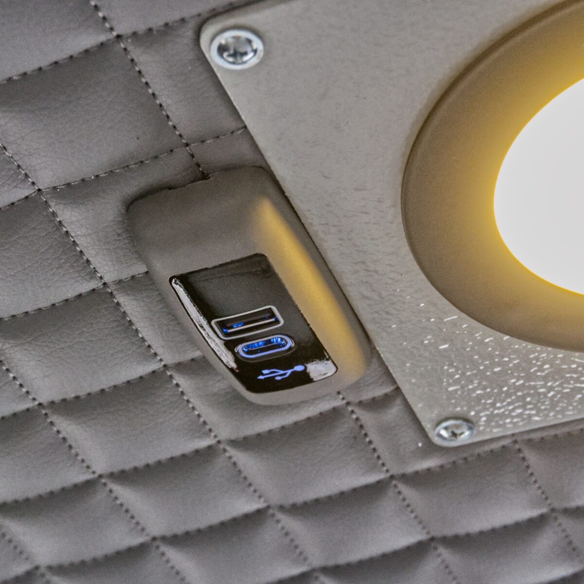 - Oświetlenie LED: Wielopunktowe wewnętrzne, punktowa lampka do czytania oraz zewnętrzne oświetlenie robocze.