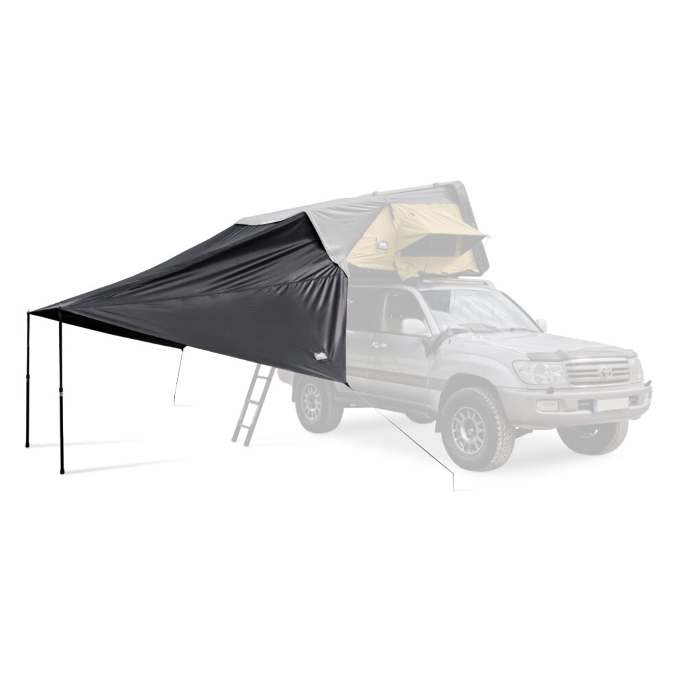 Zadaszenie do namiotu dachowego FOLD 2 marki OFFLANDER to świetny sposób na zagospodarowanie przestrzeni wokół samochodu. Solidna, wodoodporna tkanina zapewni Ci kawałek cienia w upalne popołudnie, a także suchą powierzchnię, gdzie w deszczowy ranek przygotujesz śniadanie. Możesz dokładnie dopasować je do swoich potrzeb. Dzięki teleskopowym słupkom możesz łatwo wyregulować wysokość zadaszenia tak, aby zapewnić sobie 100% komfortu. Aluminiowe słupki są lekkie, a ich regulacja bardzo łatwa.