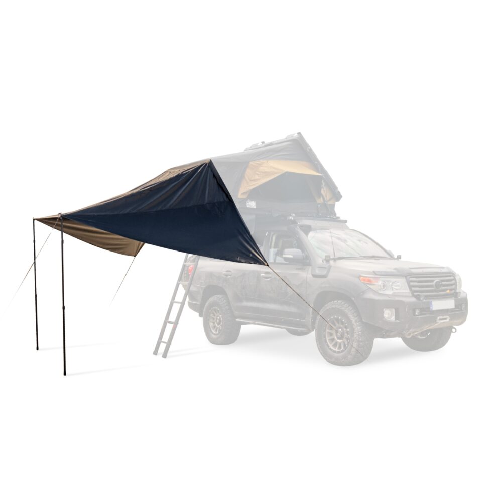 Zadaszenie do namiotu dachowego FOLD E 150 marki OFFLANDER to świetny sposób na zagospodarowanie przestrzeni wokół samochodu. Solidna, wodoodporna tkanina zapewni Ci kawałek cienia w upalne popołudnie, a także suchą powierzchnię, gdzie w deszczowy ranek przygotujesz śniadanie. Możesz dokładnie dopasować je do swoich potrzeb. Dzięki teleskopowym słupkom możesz łatwo wyregulować wysokość zadaszenia tak, aby zapewnić sobie 100% komfortu. Aluminiowe słupki są lekkie, a ich regulacja bardzo łatwa.