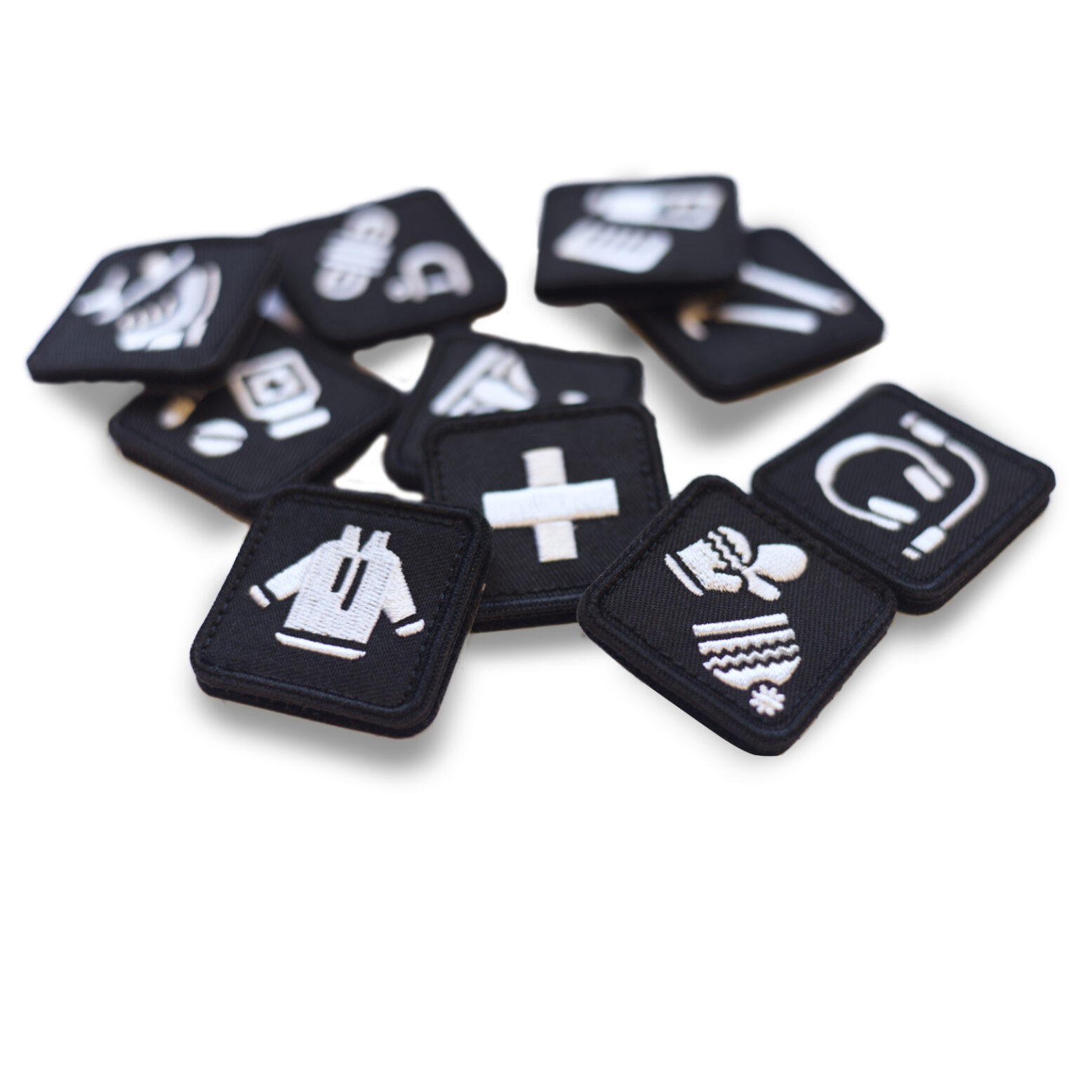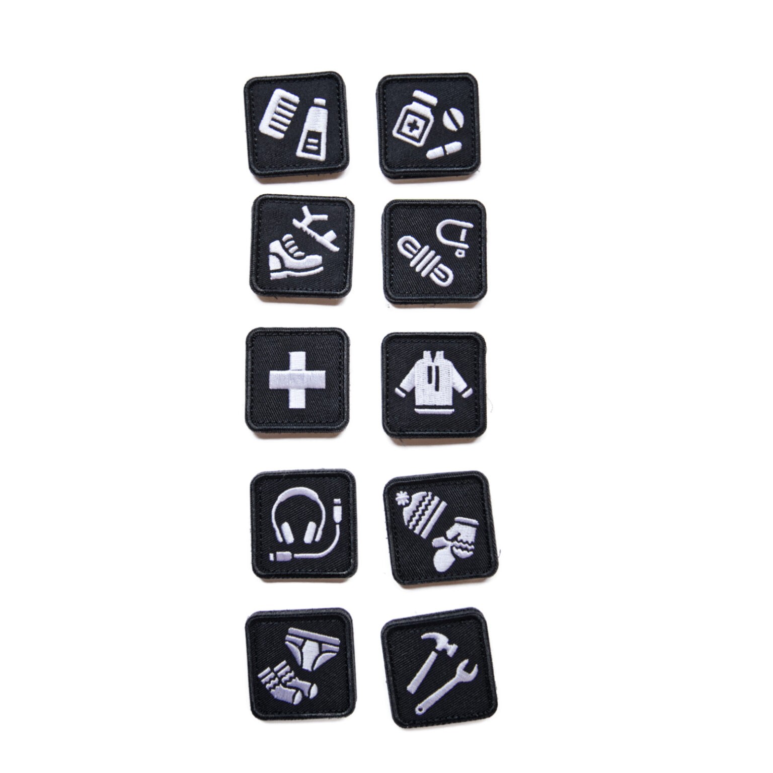 W zestawie znajduje się 11 naszywek z rzepami, co umożliwia łatwe, szybkie i trwałe mocowanie.