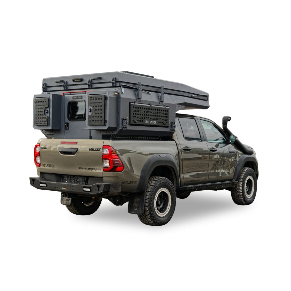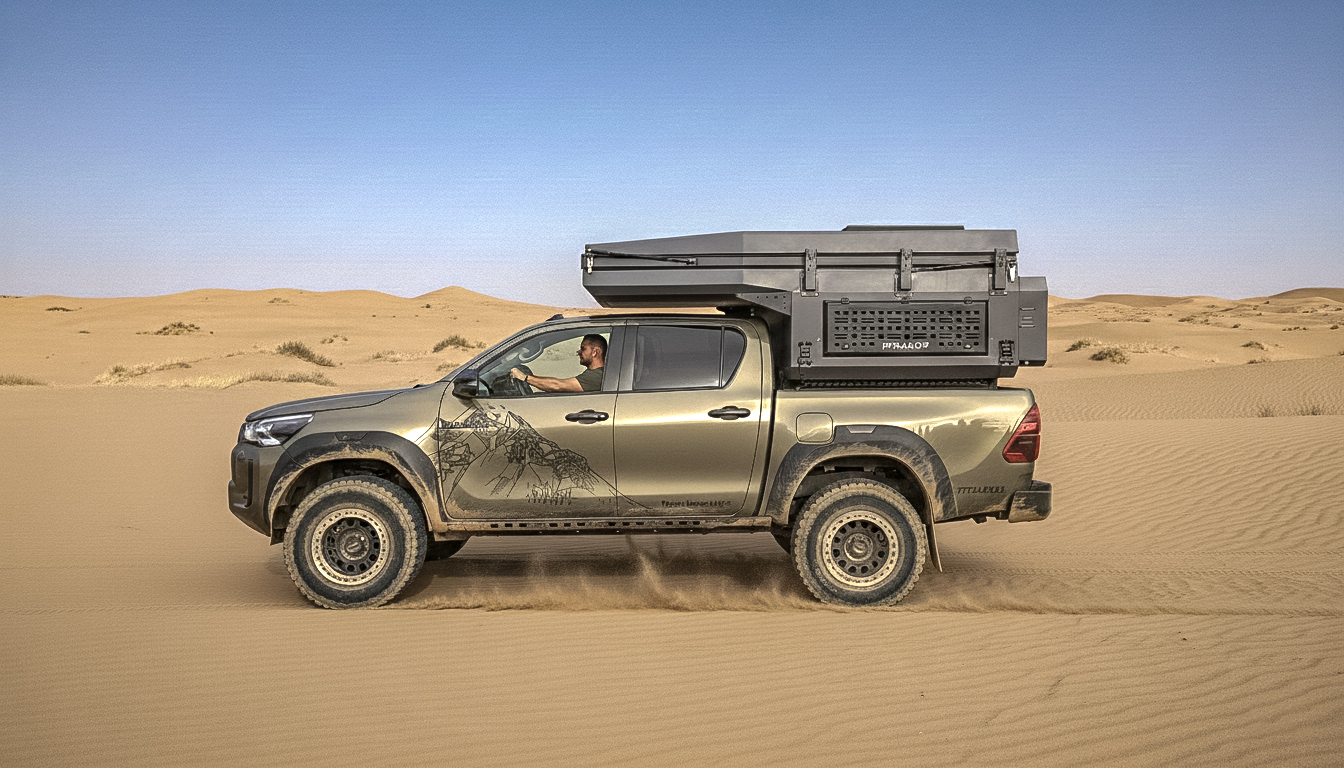 Odkryj OFFLANDER WADI S – ultralekką i pancerną kabinę wyprawową wykonaną z 3 mm aluminium, stworzoną specjalnie dla pickupów z podwójną kabiną. Przy niskiej masie własnej od 325 kg, ta zabudowa pickup zapewnia bezkompromisową dzielność w terenie i precyzyjne prowadzenie auta.