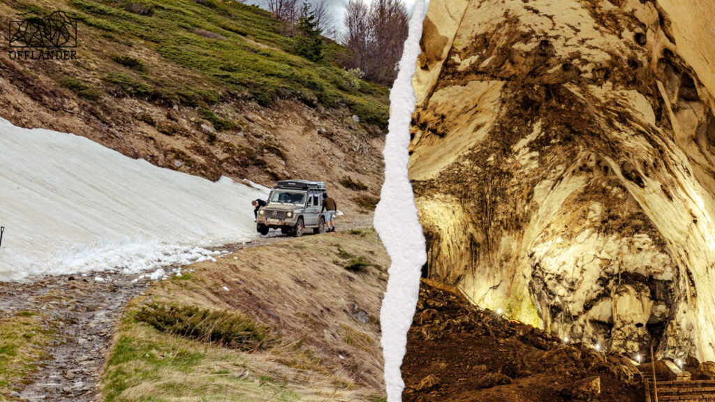 Pogoda do końca wyjazdu jest w kratkę, szybko się dostosowujemy aż w końcu przestajemy nanią zwracać uwagę. Tak przynajmniej to pamiętam. Jak jest okej to biwakujemy, jak jest zimno szukamy dachu nad głową. Jesteśmy dobrze zgrani, dwa samochody to szybkie decyzje bez zbędnego marudzenia. W następnym dniu odwiedzamy jaskinie Prohodna. Ta olbrzymia jaskinia wyżłobiona w skale przez potok robi na nas spore wrażenie. Przyznaję, że sceptycznie podchodziłem do odwiedzania jej w ogóle. Zdjęcia i filmy nie oddają jest prawdziwego piękna i aury. Już na samym wejściu podążamy za rytmami lokalnej muzyki, która odbija się od ścian wysokości dwudziestu metrów. W sklepieniu ponoć są Oczy Boga. Dwie duże owalne dziury, przez które wdziera się światło, my z Mario widzimy tam inne kobiece części ciała. Na celowniku mamy także Monaster Głożeński, w którym jemy prosty posiłek w postaci grochówki bodajże. Kradniemy resztę chleba i udajemy się dalej w stronę wodospadów Skoka w Tetewen. Dwa wodospady w jednym miejscu w pięknej zielonej i enigmatycznej dolince. Spacer dobrze nam robi. Kupujemy biały miód, który dołącza do naszego miodowego arsenału. Wcześniej w Prohodnej kupiliśmy propolis do gardła i nosa, który leczy nas przez następne dni. Bułgarskie UFO Pomnik Komunistycznej Partii Bułgarii idealnie dokręca mój słoik z komunistycznym dżemem. Pomnik ten został wzniesiony na wzgórzu Buzłudża w roku moich urodzin. Byłem bardzo podekscytowany, żeby go zobaczyć. Lubię takie stare kiczowate i bezsensowne budowle, no i jest widok. Niemniej nasza emocjonalnie zaburzona inteligencja, pod wpływem pociągnięć nosem i kaszlnięć całej ekipy przekierowała nas w stronę Rodopow. Oczywiście na skróty. Słowo „skrót” odbija się wielkim echem w naszych głowach. Zazwyczaj kończymy w ciężkim terenie, walcząc wyciągarkami i taśmami. Także, skracamy sobie odpowiednio dzień. Tym razem było inaczej, ale wyciągarki tez były. Taśmy też. Przebijaliśmy się z Aprilltsi do Tazha przez pasmo górskie w centrum Bałkańskiego Parku Narodowego. Zaczęło się niewinnie, resztki starego asfaltu. Rozbity przez śnieg, wodę i koła ciężkiego sprzętu leśników. Spuszczamy powietrze i śmiało podążamy pod gorę, mamy szuter, błoto , kamienie, potem małe skały. Zwalone drzewa i coraz stromiej, zygzakowato, pod gorę wśród drzew. Szlak jakby na chwilę znika. Ciężka dwuseta grzęźnie w końcu, odpalamy wyciągarkę, ktora oczywiście nie działa poprawnie. Pilot przerywa i się tnie. Mario i jego syn Maks asekurują, reszta chowa się w krzakach. Boruje pod gorę. Są emocje, szczególnie jak Mario rozpędza Gelendę i prawie bezbłędnie wjeżdża pod gorę za jednym razem. Nie wytykam mu falstartu więcej niż dwa razy i wesoło naładowani adrenaliną przybijamy piątki. Wszystkiemu od dłuższego czasu przypatruje się para młodych piechurów zdobywających ten szam szczyt, Maragidik zapewne. My wiemy tylko, że mamy jechać tam pod gorę a potem w dół. Mijamy się potem z nimi wielokrotnie machając sobie przyjaźnie. Nie zapomnę jednak ich min jak mijaliśmy ich pierwszy raz. Prawdziwe zadziwienie, że tu można samochodem próbować wjechać. U szczytu połoniny zaliczamy krótki lunch, a wcześniej przerwę na kawę. Podziwiamy surowy krajobraz. Drzewa, które nie zdążyły jeszcze puścić listków, szarawą trawę oraz kilka budowli w niedalekim sąsiedztwie, zapewne schroniska. Droga po drugiej stronie pasma jest inna, szeroka i schodzi łagodnie w szutrowym rytmie w dół. Za jednym z zakrętów czeka na nas niespodzianka, wodospad Kademliya. Nie był w naszych planach i miło nas zaskoczył swoim 70-metrowym majestatem, urokiem, usytuowaniem i kojącym hukiem rozbryzgującej się wody na skałach. Podążamy dalej, w jednej z mieścin przekornie nazywanych przez nas Kaloryfer [Kalofer] jemy bułgarskie kotlety w starej restauracji. Betonowy melanż na posadzce, cerata i urocza starsza para biją na głowę nasze kotlety. Podziwiamy znowu wielkie place defiladowe, monumenty i arsenał wojenny. Mniam. Najedzeni babcinymi kotletami i trochę też kulturowo, kierujemy się do Kopriwszticy. Następna nazwa, która robi mi konfetti w głowie. Miasteczko wynagradza mi to swoim urokiem, kolorowymi domkami i starym miastem. Właściwie całe jest stare, są też starzy ludzie. Większość budynków jest bezludna i zamknięta. Właściwie słowo opustoszała jest lepszym słowem. Ale jest pomnik.